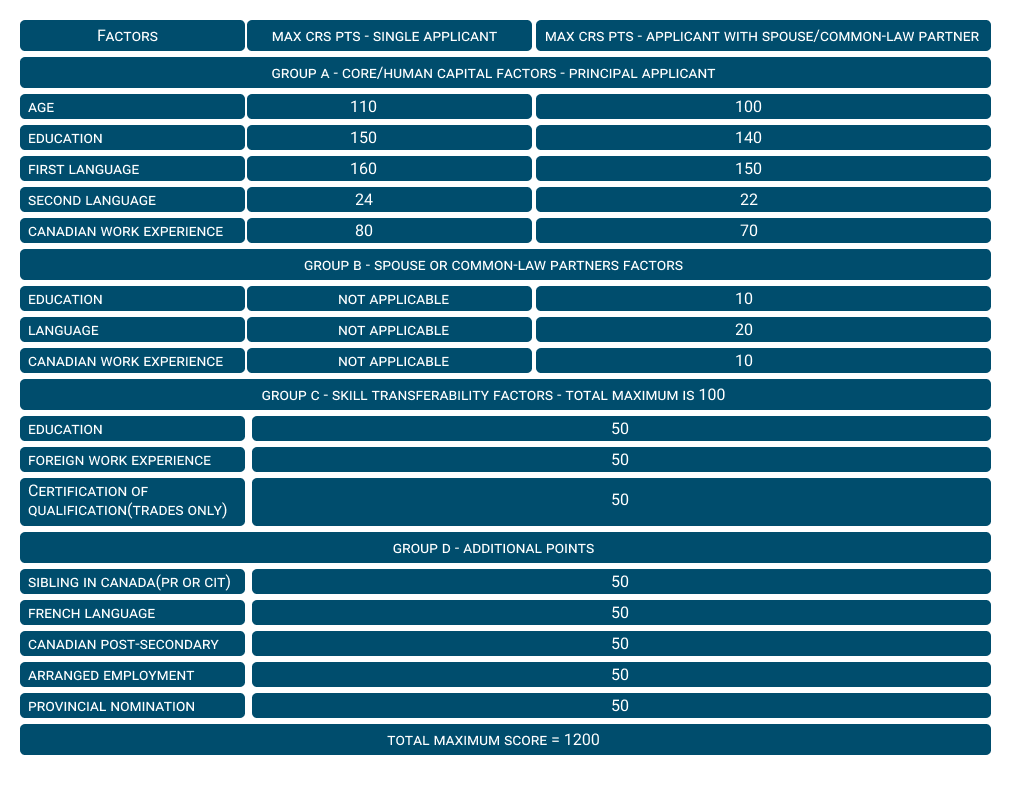 To calculate your CRS score, you must first know how CRS points are calculated. The maximum points you can get is 1200. The selection factors include education, age, language proficiency, and others. You will need your language test results and if your degree is not Canadian, your Educational Credential Assessment (ECA).
